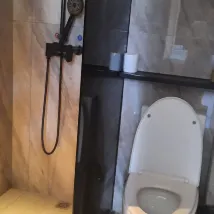 Die Lage ist recht praktisch, der Duschbereich im Waschraum ist etwas unpraktisch, und als es Zeit für das Abendessen zum Mitnehmen war, dachte ich, es würde vom Roboter-Lieferautomaten in der Lobby geliefert werden, aber jedes Mal klopfte das Personal zum Mitnehmen sehr laut an die Tür und machte ein wenig Angst. Die Hygiene war gut, aber es war sehr staubig, und der Fernseher konnte von Zeit zu Zeit nicht angeschlossen werden.