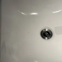 Das Waschbecken weist beim Betreten Grapefruit-ähnliche Partikel auf und der Boden ist an manchen Stellen etwas klebrig. Insgesamt ist es ok.
