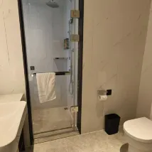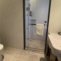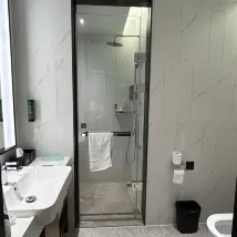 Es gibt einen kleinen Fehler in der Ausstattung. Das Wasser fließt nach dem Einschalten der großen Dusche zu langsam, sodass das Wasser über den Duschraum läuft. Alles andere ist großartig.
