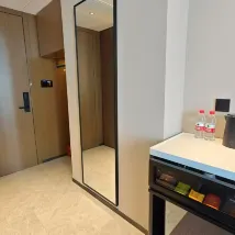 Die Umgebung ist sauber und hygienisch. Das Frühstücksangebot ist relativ reichhaltig, das chinesische Essen hat einige lokale Spezialitäten, das westliche Gebäck schmeckt gut, aber der einzige Nachteil ist der Mangel an Käse. Der Parkplatz wird mit dem Einkaufszentrum nebenan geteilt und das Parken ist kostenlos, das Aufladen muss jedoch an einer nahegelegenen öffentlichen Ladestation erfolgen. Es gibt einen Waschraum, in dem Sie kostenlos Ihre eigene Wäsche waschen können, aber die Waschmaschine und der Trockner sind nicht mit dem Smart-TV im Zimmer verbunden. Sie müssen im Waschraum warten, was nicht praktisch ist. Der Fernseher kann zur einfachen Betrachtung auf die Leinwand projiziert werden.