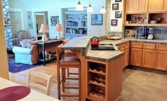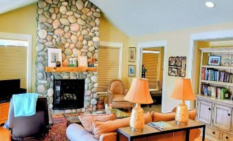 This charming home is filled with vibrant art, reminiscent of art festivals the region is known for! Cozy patios flow on either end of the townhome, allowing guests to enjoy the sunshine and togetherness. Cushioned seating is provided Spring - Fall. A gas grill is available for all your culinary delights.