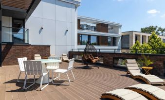The new modern apart-hotel is located in the central area of the city, in its historical quiet part surrounded by greenery. At the same time, the entire infrastructure for business trips, family or individual vacation is within walking distance: a business center, grocery supermarkets, restaurants and coffee shops, a walking area along the Sochi River, children's and sports grounds.