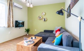 Diese Ferienwohnung mit Klimaanlage besteht aus 2 Schlafzimmern, einem Wohnzimmer, einer voll ausgestatteten Küche mit einem Kühlschrank und einer Kaffeemaschine sowie 1 Badezimmer mit einer Dusche und kostenlosen Pflegeprodukten. In dieser Ferienwohnung werden Handtücher und Bettwäsche zur Verfügung gestellt.