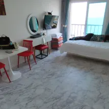 Great location, 15 min walk from Bus Terminal and buses to Seoraksan park, rooms facing sea and a small island, nice terrace, huge rooms with everything one can wish for.