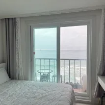 위치가 최상. 바다보면서 깨고 아침에는. 저녁바다 보면서 잠들수있어 좋았다