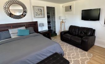 Ultra comfy queen bed, luxe bedding and storage. Full size bathroom with tub/shower. Bath essentials, towels and hair dryer. Iron, ironing board and closet with hangers.
