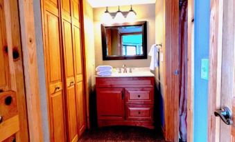 - Bathrooms: The condo includes 1.5 bathrooms for your convenience. The main bathroom upstairs features modern fixtures and plenty of storage, while the half-bath on the lower level ensures extra comfort for all guests.