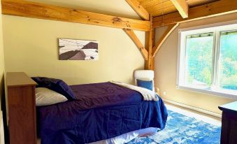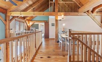 The primary bedroom is a true oasis, boasting a king-size bed, its own fireplace, and breathtaking views of the lake. Wake up to the gentle sounds of nature and start your day in the most peaceful way possible. The en-suite bathroom offers a luxurious experience with a large walk-in shower and a soaking tub, providing a perfect spot for relaxation and rejuvenation.