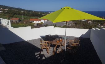 Large and cozy terrace over the garden with a spectacular view of the village of Sao Roque and the neighboring island of Sao Jorge.