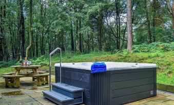 Stanton; woodland lodge for 14 with hot tub, log burner, BBQ, near Alton Towers.