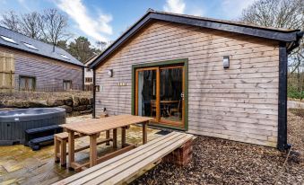 Ashenhurst; woodland lodge for 4 with hot tub, BBQ, near Alton Towers.