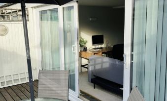 - Above the lounge is a mezzanine level with 3-seater sofa, desk & chair, also patio doors leading out to a private roof terrace. This is a great spot to tuck yourself away and work peacefully, or just to relax and unwind after the day's activities.
