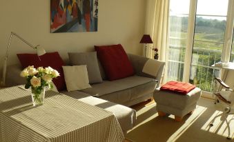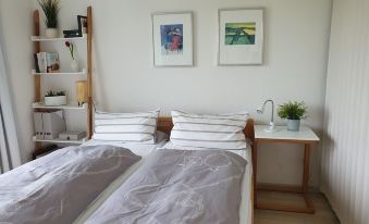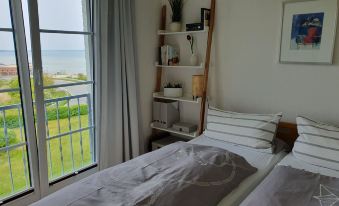 The very comfortable and modern equipped apartment is located on the first floor of an apartment complex, directly on the Baltic Sea and close to the seaside resort of Laboe. The apartment comprises a sea view from all windows and offers a beautiful panoramic view of the Kiel Inner Fjord and a nature reserve with a stream. You can observe every ship and every sunset directly from your sofa; in the morning you can watch the sunset through the window by the kitchen unit. The apartment comprises a living/dining room with a kitchen unit, a bedroom with a double bed and a bathroom with shower/WC. Parking is available in front of the house. Wonderful hiking and cycling trails start directly in front of the door; a flat, sandy beach is located in 50 m. Laboe can be reached in 5 minutes by bike and offers all amenities of a modern seaside resort with various shopping facilities, medical care as well as diverse gastronomy.About pets:No pets allowed.About checkOut:Check out before 10:00 AM.About children:Adults only.About checkIn:Check in after 2:00 PM.About smoking:Smoking is not permitted.About events:No events allowed.