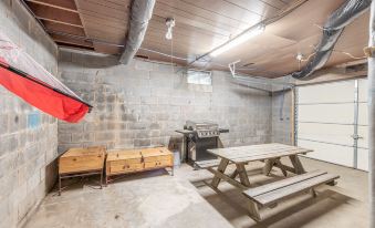 The location is lovely. We had fun trying to fish from the river deck.The house is nice but it doesn’t work well for a large group. There are no good spaces to all be together. There’s one small table in the kitchen with 4 chairs. We ate several meals together so we carried over the folding table from the fishing deck, chairs and crockery up from downstairs, and chairs from the porch. Our improvised long table worked, but it was a tight squeeze.The rural location of the property suggests that guests will want to cook some meals. There were hardly any surfaces for meal prep, and almost no shelf space to store food (apart from the spacious refrigerator). We put boxes of food outside on the porch and hoped there were no scavengers! Waste paper baskets and mirrors would be helpful in all the bedrooms.The bottom step going down to the basement is deeper, and then there is a half step up to the downstairs area. Most of us stumbled on the bottom step and then tripped on the half step up. Thankfully the handrail saved us from falling. One of the twin rooms has no windows or closet and can only be accessed through the open plan double room. It is really an enclosed corridor between the basement room and the garage. It has the drainpipes from the bathroom on the floor above going down the wall, so every time the toilet is flushed or someone takes a shower, the pipes make a terrific racket. A few of the toiletry dispensers in the bathroom were practically empty.