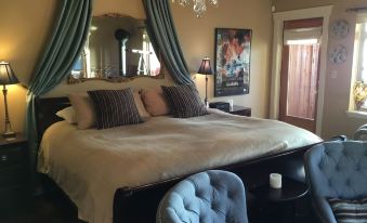I stayed in the Casablanca room. The bed was so comfortable! The clawfoot bathtub was such a treat, and the shower was lovely too. You can tell the owners put a lot of thought and effort into every part of this room. The little touches they provide like chocolates, bath salts, robes, water filters, etc. really make you feel pampered. The whole vibe is soothing.