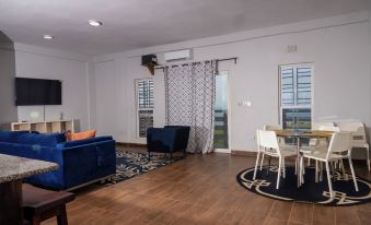 Myneya Views is a 3 bedroom 2 bathroom serviced apartment nestled in the hills of Freetown Rural Peninsula. Come marvel at the panoramic views of the Atlantic Ocean from our Rooftop terrace. 3 minutes from River No. 2 Beach and Franco' Restaurant.About pets:No pets allowed.About checkOut:Check out before 11:00 AM.About children:Children allowed: ages 0-17.About checkIn:Check in after 4:00 PM.About smoking:Smoking allowed: in designated areas.About minBookingAge:Minimum age to rent: 21.About events:No events allowed.