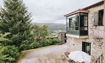 About 4 km. from the town of Cerdedo, in the middle of TERRA DE MONTES, and already announcing the proximity of the RÍAS BAIXAS, it is located in the small village of Castro Domedio. Medieval bridges, paths that are lost among forests, fishermen awaiting patients at the edge of a river ...