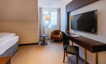 Das Zimmer ist auf dem neuesten Standard und war sehr sauber. Das Bett war sehr bequem, ich habe super geschlafen. Vielleicht einen kleinen Mangel, eine Ablage für den Koffer. Ich wurde sehr herzlich empfangen, das ganze Personal ist sehr freundlich und aufmerksam. Kann ich nur weiterempfehlen. :-)