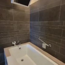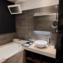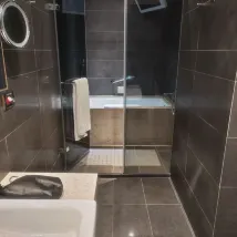 Die Badewanne im Zimmer ist groß genug und es gibt auch Bademäntel und einen Fernseher. Das Zimmer ist sauber, komfortabel und rücksichtsvoll und entspricht einem Fünf-Sterne-Hotel, aber der Preis ist sehr erschwinglich.