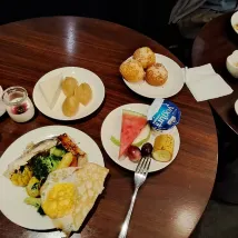 Es gibt einen angeschlossenen Parkplatz und das Frühstücksbuffet ist großartig! Ich habe ein Zimmer mit Badewanne bestellt und das Zimmer war sehr groß! Nach dem Besuch des Nachtmarktes kann man auch ein Bad nehmen, was sehr angenehm ist! Das Bett ist extragroß, sodass es für zwei Erwachsene und eines für eine Person nicht überfüllt ist. Mein Mann war von der kleinen Schönheit im Zimmer so begeistert, dass er es am nächsten Tag bis 10 Uhr kaufen wollte Wir gingen aber um 9:30 Uhr nach unten, und der Kellner war zunächst auch verwirrt. Er sagte nicht: Das Essen dauerte nur bis 10 Uhr, aber wir saßen zuerst und die Mahlzeiten wurden eins nachgefüllt nach einem weiteren gegen 9:40 Uhr kam der Kellner an den Tisch und teilte uns mit, dass die Essenszeit bis 10 Uhr sei. Wenn Sie essen möchten, können Sie es zuerst an den Tisch bringen 10:15 Ich habe gesehen, wie sie die Dinge nacheinander erledigten. Es kam mir nicht so vor, als würden sie die Leute verjagen