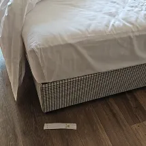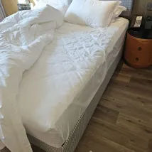 2. Auf der Bettdecke und dem Kissen sind Blutflecken. Am ersten Tag fielen mir keine Probleme auf, aber als ich am nächsten Abend ins Bett ging, stellte ich fest, dass die frisch ausgetauschte Bettdecke und das Kissen dunkelbraune Flecken hatten.
