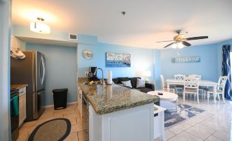 The Master is a tropical getaway with Queen size bed and has a walk-in shower. The 2nd room has 2 twin beds. If you need additional sleeping space, the living room has a brand-new Queen Sized Murphy Bed tucked away! The kitchen has granite countertops and stainless steel appliances for cooking your catch after a long day out in the boat. The living room has such a comfortable cozy feel and all-new furniture.