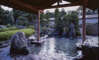 Hot spring accommodation with 100% natural hot spring water in separate male and female indoor baths and large-scale outdoor baths.