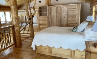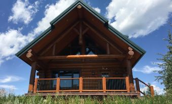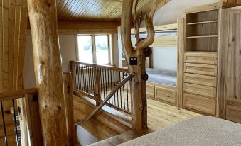 This 2-story cabin is separate from the main residence with large windows facing the Rockies and Tetons away from the main home for privacy. As you enter the cabin on the main floor, there's a bathroom, washer/dryer, kitchen and cozy living room/dining area. The kitchen is very well equipped. The upper level is a spacious loft with a queen bed. The large picture windows throughout make the cabin light and bright.