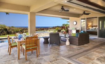 The lanai also boasts a Wolf six-burner grill, including rotisserie, There is a fresh fish market in the Kawaihae harbor area, an approximate 10 minute drive, so you can grill the best locally caught fish in this luxurious setting.
