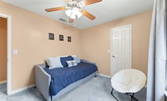 Spacious backyard offers room for family and sporting enjoyment like soccer, football, badminton, volleyball and cornhole. Barbecues and fireside gatherings under the stars.About pets:No pets allowed.About checkOut:Check out before 11:00 AM.About children:Children allowed: ages 0-17.About checkIn:Check in after 3:00 PM.About smoking:Smoking is not permitted.About minBookingAge:Minimum age to rent: 26.About events:No events allowed.