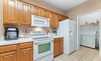 The fully equipped kitchen sets the stage, inviting you to turn every meal into a celebration. From everyday cooking to gourmet creations. All needed amenities along with rice cooker, air fryer, toaster oven, and even a pizza oven to add a touch of culinary magic to your stay.