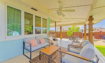 ✔ Private, fully-fenced backyard and a covered wrap around patio with ceiling fans and a Blackstone cast-iron griddle.
