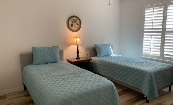 You'll feel welcomed and relaxed as soon you open the front door to your home away from home. This home is beautifully decorated and boasts a bright open floor plan. The kitchen is complete with everything you'll need to prepare and serve meals. The Living room offers plenty of comfortable seating if you're entertaining friends or family or just enjoying your favorite television shows on the flat screen TV. The master bedroom has a comfortable king size bed, large walk in closet, and a private master bath. The master bath offers a walk in shower. The guest bedroom has comfortable twin size beds for your guests. The guest bath has a tub/shower combo. The bedrooms and both bathrooms are set up with extra towels and linens. And of course there's a screened in lanai with comfortable seating for you to enjoy reading the morning paper with your coffee or juice. It's also a great place to sit and relax at the end of a busy day of activities. This home is set up for fun and relaxing that the whole family can enjoy.