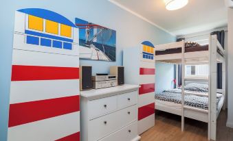 2 Schlafzimmer: 1 Etagenbett und 1 Kingsize-Bett