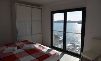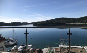 The modern and luxuriously equipped Penthouse Panorama is located in a quiet location with a unique view of the sea, the Tisno marina and the island of Murter.