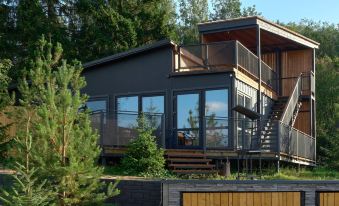 The design of the cottages is made in the style of eco-minimalism: compact cottages with interiors in soft colors, plenty of light, panoramic Windows that offer wonderful views of the surrounding area. Everything is done so that, being here, you will feel unity with nature.