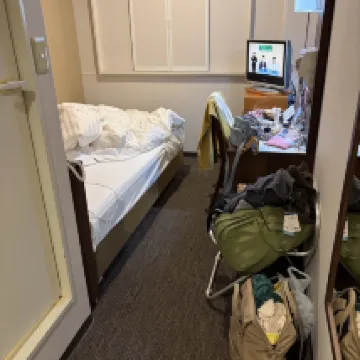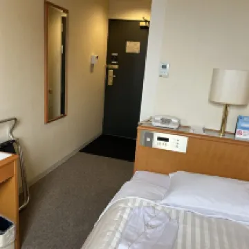 This hotel hosts many traveling workers. Rooms was small but clean. Location close to the train station. Frespo mall is a 5 minutes walk away. Free parking if you’re driving. Room comes with breakfast so that was good. Breakfast is local cuisine, which explains why local workers stay here. Receptionists were very helpful and spoke some English. All in all, I am a satisfied customer.