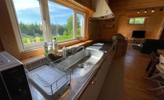 A relaxing space surrounded by the nature of Hokkaido, in a large log cabin.