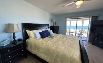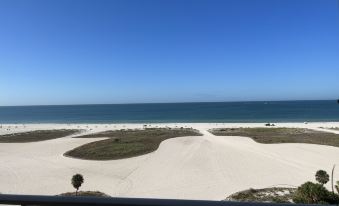 This beautiful spacious condo is directly on the Gulf of Mexico. There are two Master Suites with balconies to watch the Dolphins from and a third bedroom with views of the Intracoastal waterways. The unit is fully furnished with all the amenities of home. Private, covered parking, pool, community room with pool table and ping pong table, library, meeting area. Restaurants and shops within walking distance.