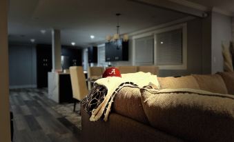 This memorable house is the perfect home base for your trip to Tuscaloosa. Whether for business travel or pleasure, you will enjoy this 5 bedrooms, 3 bath home uniquely on top of the hill. This incredible property offers plenty of space for you and your guests to relax and unwind. You'll find a large list of detailed amenities, including yard games, patio furniture, essentials like a full kitchen, hair dryer, air conditioning, washer/dryer, iron, WiFi, and bidet, etc. The 3 bathrooms ensure that everyone can get ready for the day without any hassle. Whether you're exploring the city or needed business plans, we're confident that you'll have an amazing stay at our house. We hope you'll enjoy your stay at our house. Be sure to ask about our discounts!!About pets:Pets allowed: dogs less than 50 lbs per pet (limit one pet total).About checkOut:Check out before 11:00 AM.About children:Children allowed: ages 0-17.About checkIn:Check in after 4:00 PM.About smoking:Smoking is not permitted.About minBookingAge:Minimum age to rent: 25.About events:No events allowed.