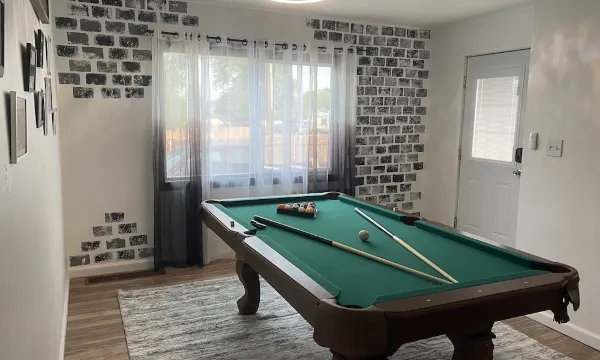 Adorable, clean, near everthing we needed including, veniew of our family reunion! Great placr to stay,lots of extras, like pool table, pacman, air hockey, etc, laundry, patio with water ac ent, hot tub. Great place to stay in Twin Falls!