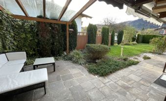 Unterwössen 65 km von Salzburg: Komfortables Appartementhaus "Achentaler Vitalhotel". Zur Alleinbenutzung: Grundstück 250 m2 (eingezäunt), schöner Garten Pflanzen und Blumen, Parkplatz. Zentrum zu Fuss in 3 Minuten erreichbar, Bushaltestelle "Altes Bad, Unterwössen" 300 m, Bahnstation "Aschau (Chiemgau)" 20 km. Die Sauna des angeschlossen Hotels darf kostenfrei mitbenutzt werden.