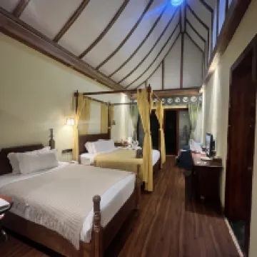 Die Zimmer sind geräumig, und wir haben ein Zweibettzimmer gebucht, das sich gut für Familienreisen eignet. Das Hotel hat insgesamt ein sehr schönes Ambiente. Man kann direkt am Hotelpool mit dem Kajak an Land gehen und sogar Heißluftballons beobachten.