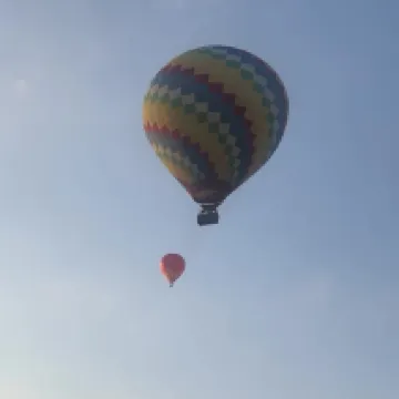 Morgens und nachmittags starteten bunte Heißluftballone auf dem Feld neben dem Hotel und boten ein tolles Bild.
