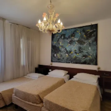 Wir waren zwei Paare, die drei Tage im „Vierbettzimmer mit eigenem Bad“ übernachteten. Das Hotel liegt im Herzen des Zentrums von Venedig und ist vom Bahnhof Santa Lucia und dem Terminal der Ferrovia „Vaporetto“ (öffentlicher Wasserverkehr der Lagune von Venedig) aus zu Fuß erreichbar. Von dort aus können Sie alles erreichen, was Ihnen bei einem Besuch in Venedig einfällt.
