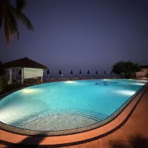 Ansonsten ist alles ok, die Hotelausstattung ist auch gut, aber das Frühstück ist zu schlecht. Für ein Fünf-Sterne-Hotel ist es den Preis nicht wert. Wir kamen in der Nebensaison, aber viele Einrichtungen waren verfügbar, außer dass das Restaurant im oberen Stockwerk geöffnet war und das untere Stockwerk nicht! Der Champagner, den sie uns schickten, war lecker und im Garten gab es viele kleine Eidechsen!