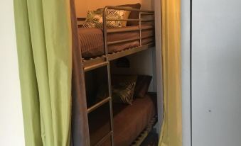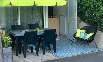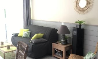 It enjoys an excellent exposure and a terrace not overlooked on one side of the residence where there are only 3 apartments on the ground floor, so little passage. It is located near the swimming pool without suffering the disadvantages. Comfort with high-end equipment (quality BZ 160 x 200 + bunk beds 90 x 190), FREE TELEPHONE AND INTERNET in the appt, 82 cm TV, game console, DVD player, iPhone docking station , iPad, iPod, radio, dishwasher, washing machine, fridge-freezer, microwave + fan, induction hob, dishes, electric barbecue ... Bathroom with bathtub and wc, towel radiator, hair dryer, storage units ...