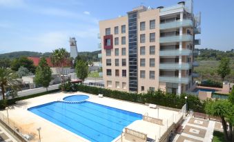 La Pineda 2 km von Salou: Gemütliches Appartementhaus "Turquesa". Sonnige Lage, exzellente Lage: Absolut zentral und dennoch ruhig, 300 m vom Meer, 300 m vom Strand. Zur Mitbenutzung: Schwimmbad eckig (10 x 5 m, 80 - 160 cm tief, saisonale Verfügbarkeit: 02.Jun. - 15.Sep.). Kinderbecken, Aussendusche. Im Hause: Fahrstuhl. Einkaufsgeschäft 100 m, Supermarkt 200 m, Restaurant, Bar 100 m, Bushaltestelle "Bus La Plana parada Aquopolis" 300 m. Golfplatz (18 Loch) 100 m. Nahe gelegene Sehenswürdigkeiten: parque temático Portaventura 2 km, parque acuático Aquopolis 500 m, Spa Aquum 500 m. Jugendgruppen nur auf Anfrage.