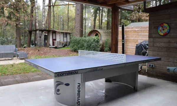This beautiful home features a cozy living room, fully equipped kitchen, 3 bedrooms, 2 bathrooms, and 2 toilets. The 50 m2 patio offers additional comfort. Play a game of table tennis, enjoy the heated outdoor shower, and explore the private forest plot of over 1000 m2. Stay in the gypsy wagon on the property from spring to autumn. The large swimming lake in the park with very clean water from a spring is only 200 meters away, and the soccer field is just 50 meters away. Let children play in the woods or have fun in the water from the fun raft.