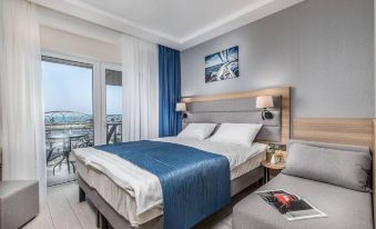 An outdoor heated swimming pool with a sun terrace is located on site. Guests can relax in the sauna with Jacuzzi and relaxation room. The Repin restaurant offers original cuisine, specialty drinks and an interesting wine list. Guests can park their car in the parking lot. A shuttle service to the beach departs every 30 minutes.